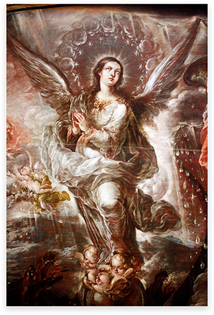 Cristóbal de Villalpando Esplendor Barroco de Puebla Fotografía del cuadro La Virgen del Apocalipsis, para la portada del libro Cristóbal de Villalpando. Esplendor barroco de Puebla. (Detalle). Editorial El Viso. Museo Internacional del Barroco.