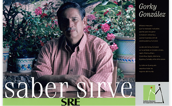 Fotografía en locación, de estudio y retrato para la campaña Saber Sirve, para folleto institucional IMEXCI, y para el catálogo de la exposición Trozos de Barro, homenaje a Gorky González. Secretaría de Relaciones Exteriores.